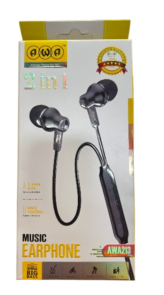 It is a wired earphone with a 3.5mm AUX universal interface. The product features include a built-in microphone for answering and ending calls, and is designed for music with "BIG BASS". It is described as having premium sound quality and is compatible with a variety of devices such as smartphones, tablets, and...